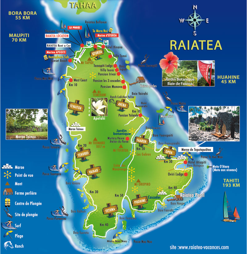 Côté mer, face au supermarché Champion, les navettes pour TAHAA vous permettront de découvrir une seconde ile ayant la particularité d'être dans le même lagon que RAIATEA. Des tours sont organisés à la journée pour découvrir cette ile toujours sauvage. Le quai des ferries se trouve derrière la gare maritime, un peu plus au sud.